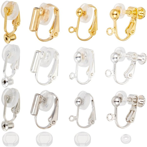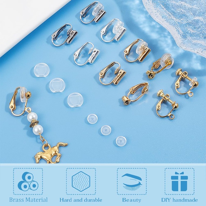 - [GREAT QUALITY]: The clip on earring components are made of high-quality brass, won't change color or rust easily. The clip on earring pads are made of silicone. There is 1 style with real 18k gold plated on the surface, which can maintain its luster for a long time.