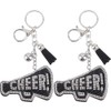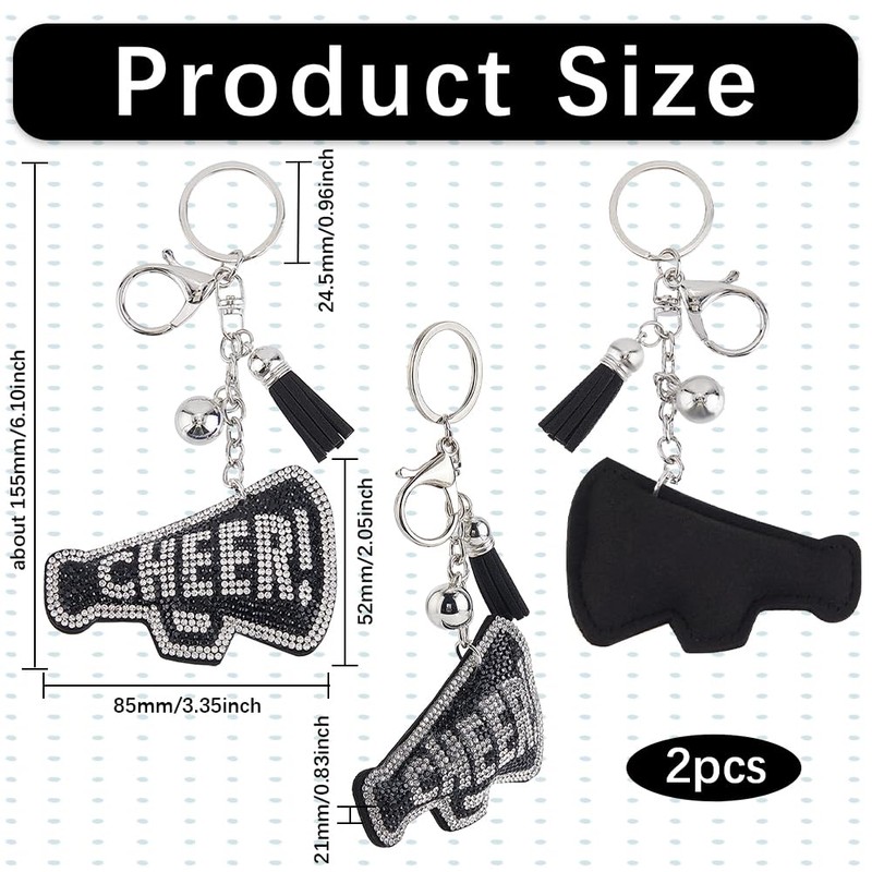SOFPLATE 1 Box 2Pcs Cheer Keychain Bulk Megaphone Key Chains Large Alloy Bling Black Word Inspiration Cool Cheerleading Tassel Keyring Key Rings for Car Keys Women Purse Party Favor Wedding Favors