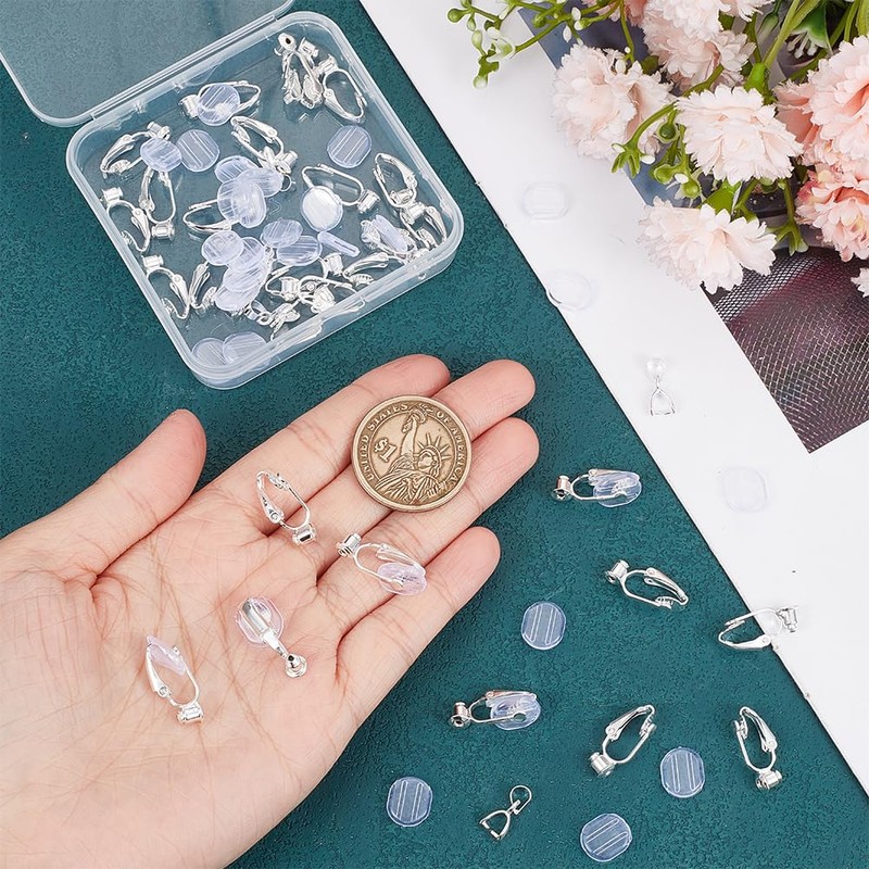 - [36PCS CLIP ON EARRING CLIPS]: You will get 36pcs clip on earring components and 36pcs silicone pads, so you don't have to buy extra. You can hang your favorite beads or accessories to create a unique earring for yourself. Adequate quantity of earrings can meet your daily needs.