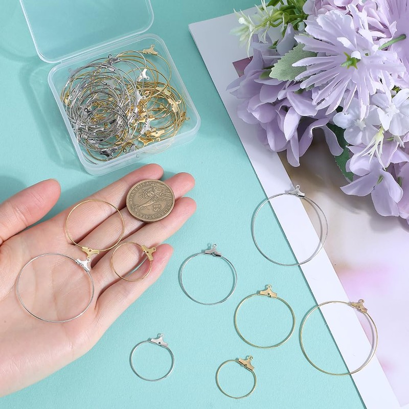 - [60PCS ROUND BEADING HOOP EARRINGS]: You will receive 60pcs 2 colors (gold, silver) round beading hoop earrings, 6 styles, 10pcs/style. ideal for creating unique, elegant jewelry for any occasion, can meet your handmade diy earring-making project needs.