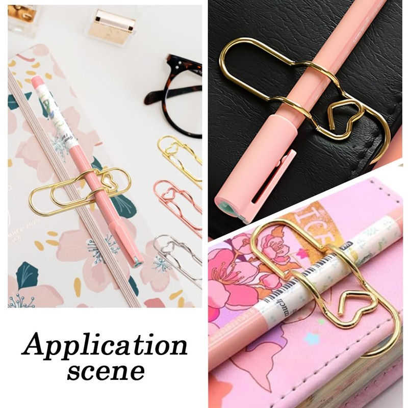 Versatile: the heart pen clip is widely used and is suitable for various books such as notebooks. Journals and ledgers. They can also be used to safely organise postcards income bills, etc. Whether at school or in the office, they are suitable for use