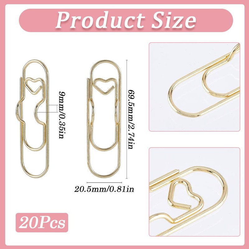 SOFPLATE 1 Box of 20 Paper Clip Holders Made of Metal Golden Pen Clip in Heart Shape Paper Clip Made of Carbon Steel Portable Insert for Pencils for Notebook Diary Scrapbook Accessories Indoor and A