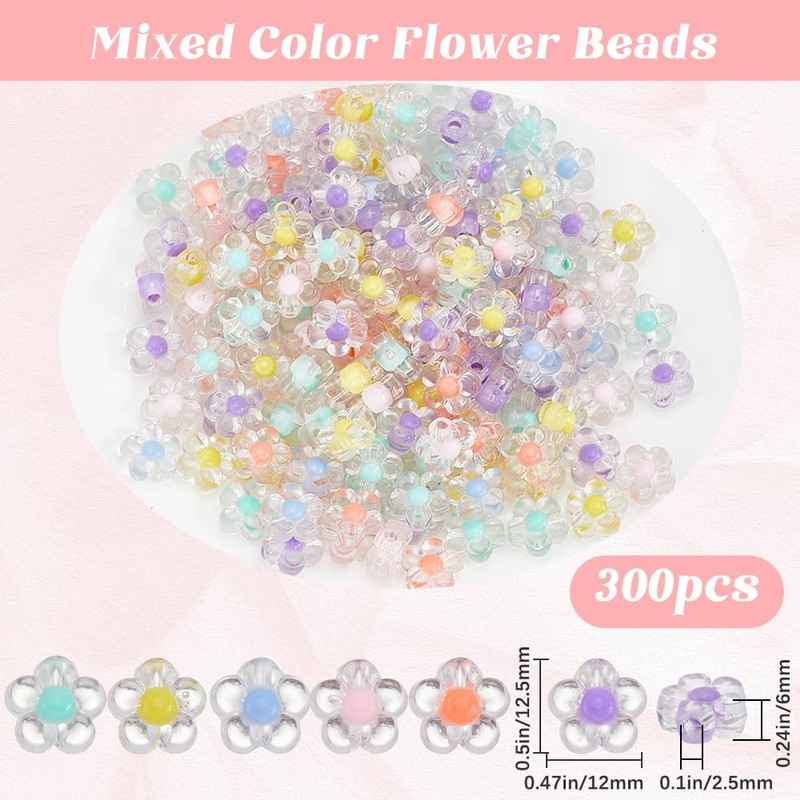- [Size and Content]: Acrylic flower beads * 300pcs: 12x12.5x6mm(0.47x0.49x0.24inch), hole: 2.5mm.