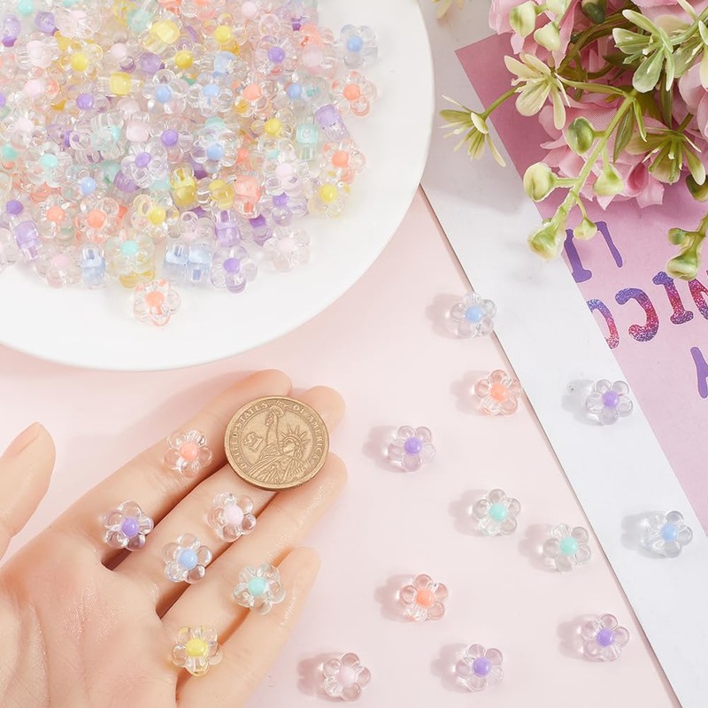 - [Flower Beads]: Flowers usually represent beautiful things, they can make people feel happy and relaxed both physically and mentally. Our acrylic flower beads can be made into various jewellery crafts that will always accompany you.