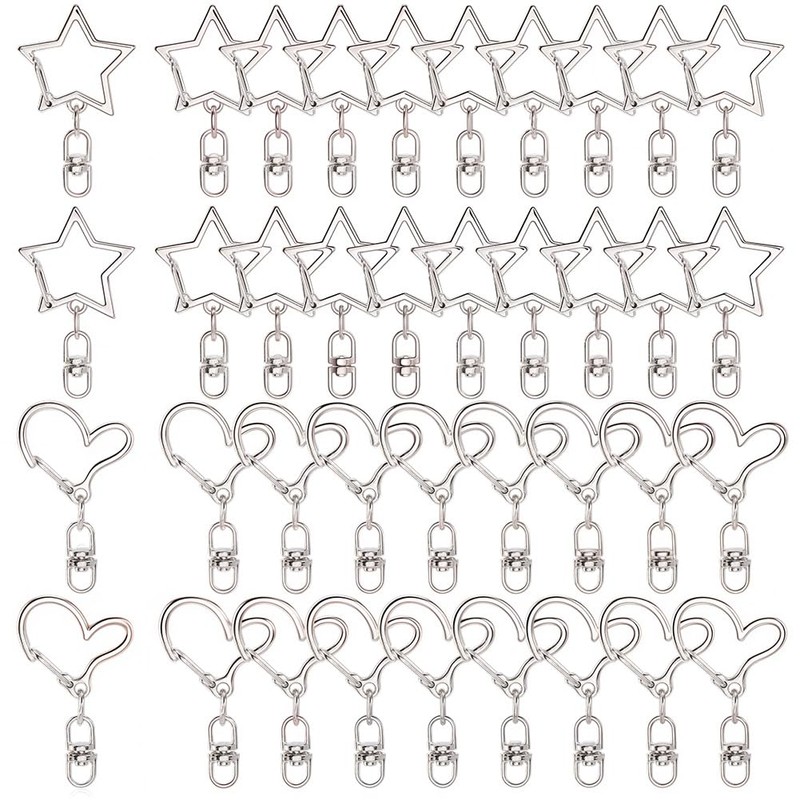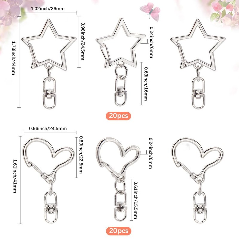 - Stylish Dual Designs: Our rotating keychain set features two elegant designs, 20pcs silver stars and 20pcs gold hearts, adding a touch of charm to your keys, bags, or DIY projects. The mixed color assortment offers versatile styling options for both casual and decorative uses