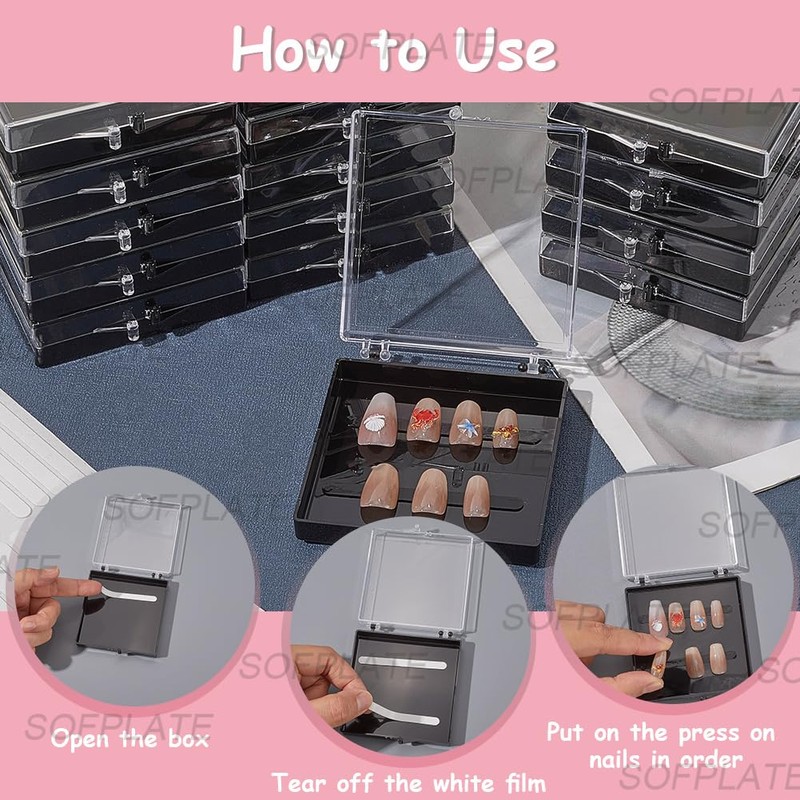 - Black Nail Box Holder: Black press on nail case, clear design, allows for better visibility of the contents inside, making it easy and quick to find. It is easy and quick to open, and can be carried around with you