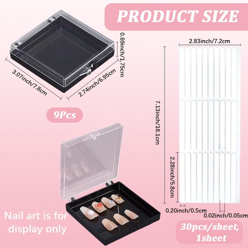 - 9Pcs Nail Container: Contains 9pcs press on nail case and 1 sheet sticker, 30pcs/sheet, so there is no need to purchase extra. The quantity is abundant and can meet daily use and replacement needs