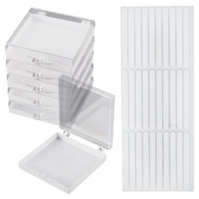 SOFPLATE 9Pcs Press on Nail Box Set Plastic Manicure Box with 30Pcs Adhesive Stickers 3.1 x 2.7 Inch Square White Empty Nail Tips Storage Organizer Container for Nailarts Tips Manicure DIY Packaging