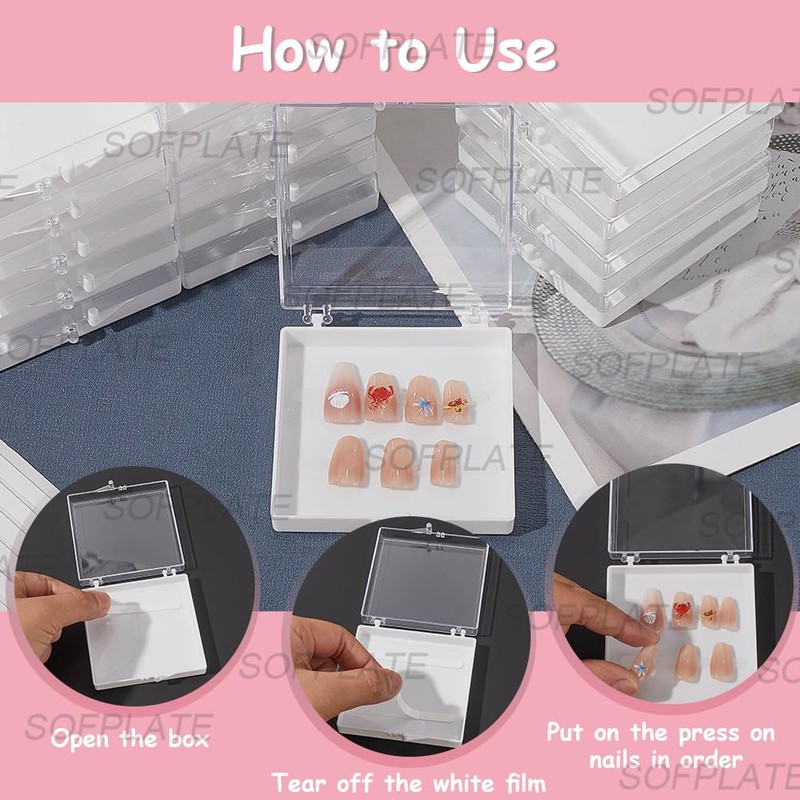 SOFPLATE 9Pcs Press on Nail Box Set Plastic Manicure Box with 30Pcs Adhesive Stickers 3.1 x 2.7 Inch Square White Empty Nail Tips Storage Organizer Container for Nailarts Tips Manicure DIY Packaging
