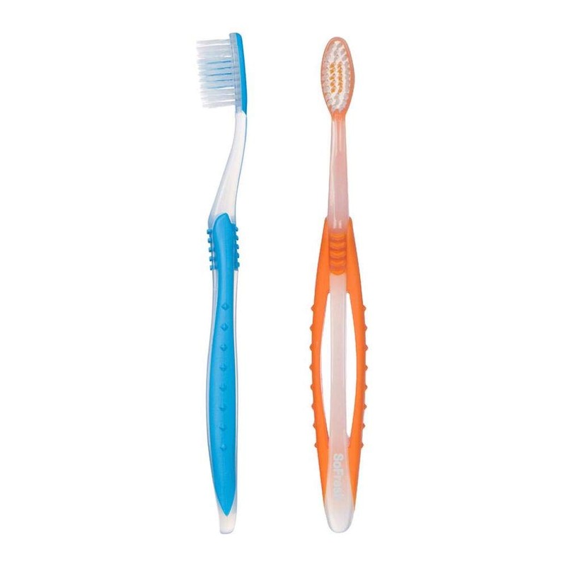 SoFresh Adult Manual Flossing Toothbrush Wide Grip - 2 Pack- Colors Vary