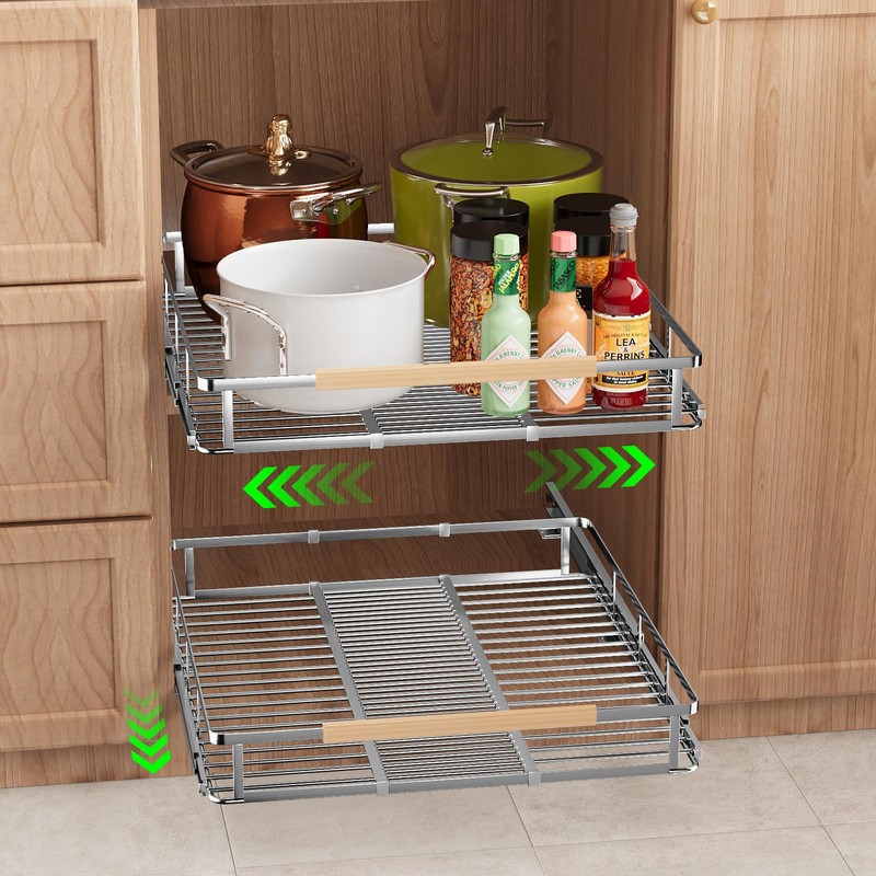 • HIGH QUALITY STAINLESS STEEL: The roll out shelves for kitchen cabinets are made of high quality stainless steel and has a load capacity of 50 lbs