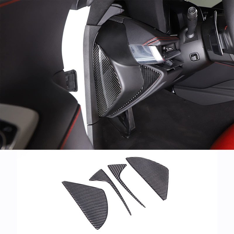 Soft 3D Real Carbon Fiber Car Anti Crash Trim Dashboard Side Door Panel Sticker Trim Decor Trim Compatible with Corvette C8 Stingray Z06 Z51 2020 2021 2022 2023 Interior Decoration Accessories (Black)