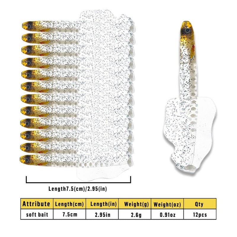 Soft Bait Fishing Home Fishing Floating Lure Suitable for Saltwater and Freshwater Trout, bass Fishing Lure 10+2pcs