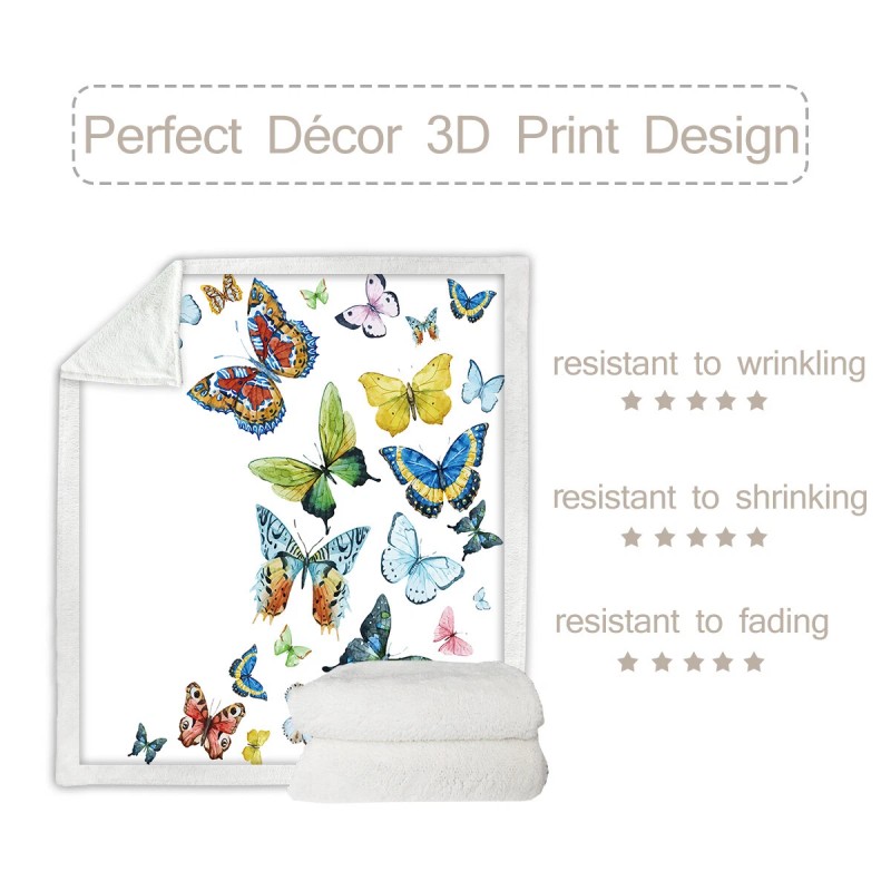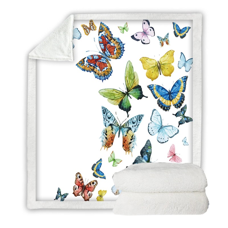 Soft Colorful Butterfly Fluttering Sherpa Fleece Blanket Bedroom Gifts 60"x80"