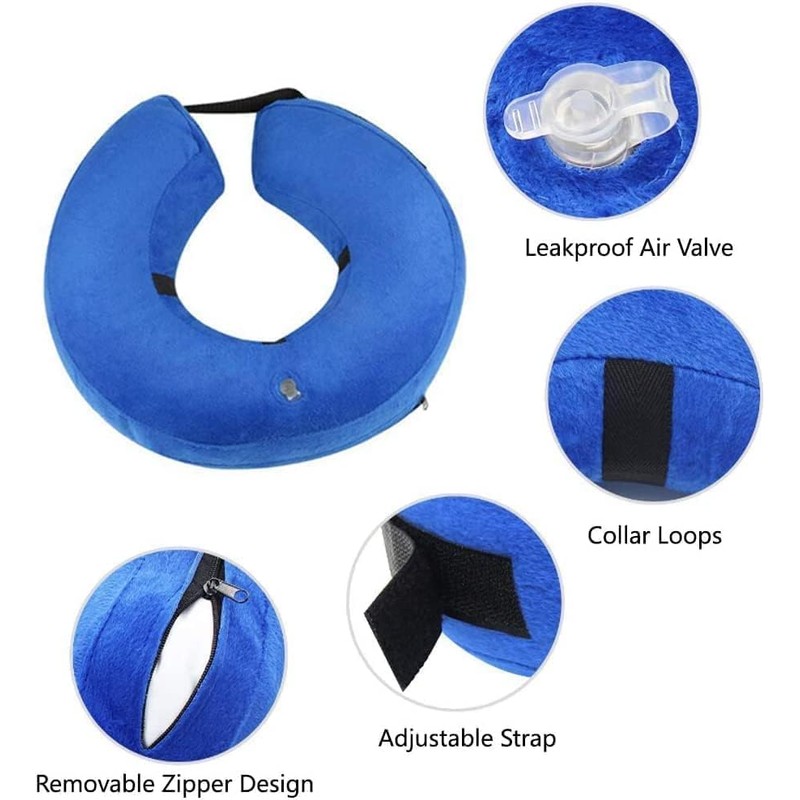 - Inflatable recovery collar, you can deflate it and store it in a small space when you do not use it and there is a zipper opening on one side, you can take the bag out and wash the outside cloth washable.