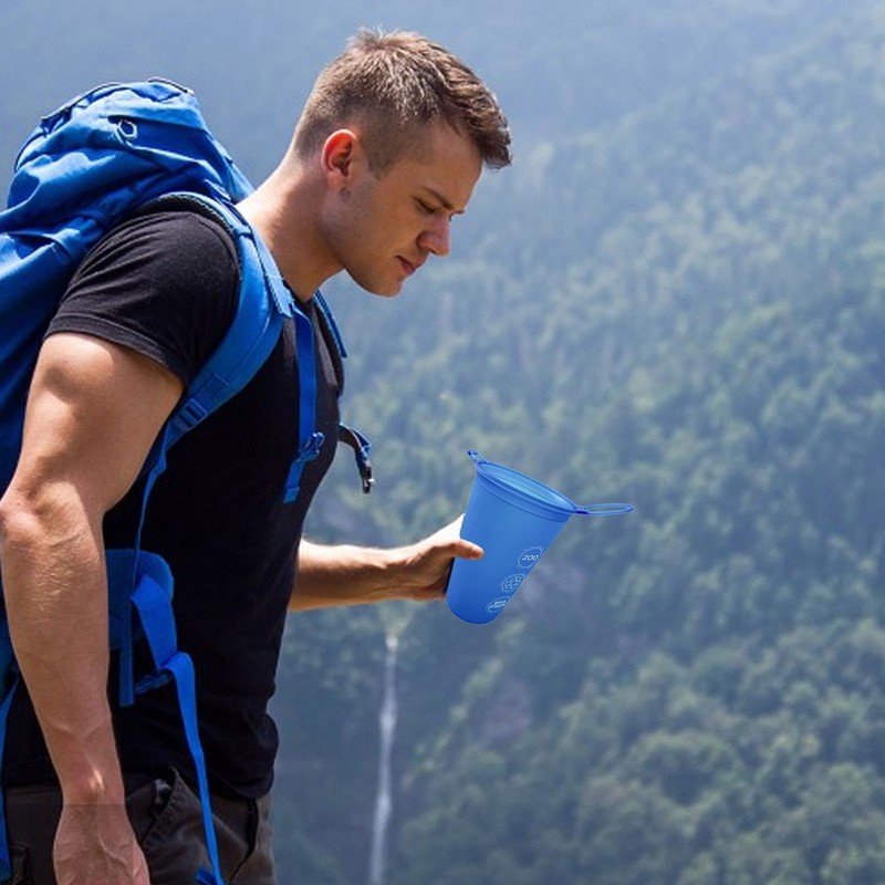 • Compact Size: The foldable design of our Travel Water Bottle lets you compress it to a compact size, fitting it effortlessly into any backpack or pocket. It's easy to carry and doesn't take up much space, making it good for any adventure.