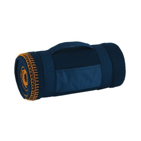 - Soft fleece picnic blanket with colour stitched edge and carry strap.