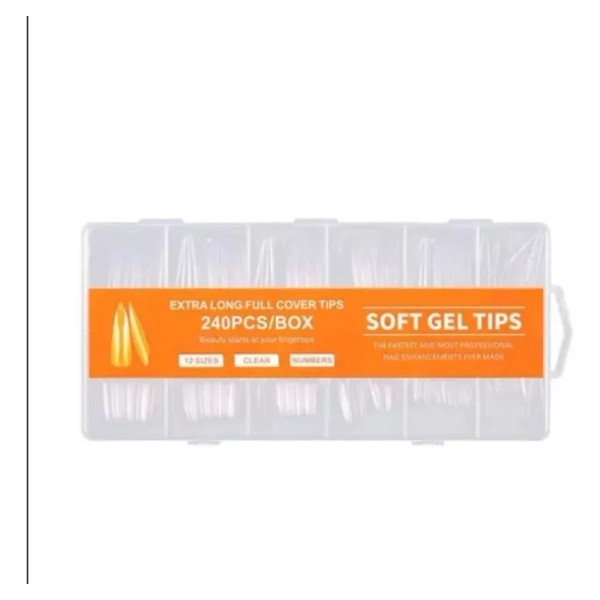 soft gel Uñas Postizas Tip Xxxl Caja Con 240 Uñas Press On,trasparent
