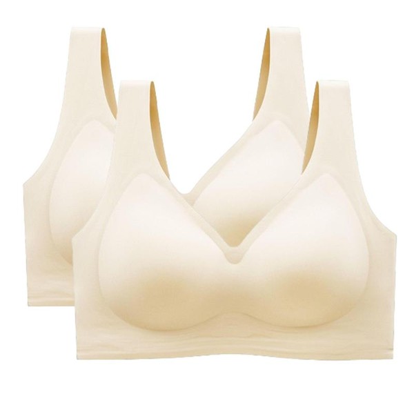 SOFT INTENTION Women's Seamless Bra Wireless Bra Full Coverage Push Up No Underwire Tshirt Comfortable Everyday Plus Size Friendly- Jelly:_Beige Duo Bundle - 2 Pcs_2XL (Size 5)