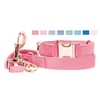 - 🐾 SUPER SOFT COORDINATED MATERIALS - The well made pet collar and leash are made of high-quality microfibre leather and nylon to make it not only sturdy durable but also soft and comfortable to use. It is the third generation faux leather and known for its almost fleece-soft surface with superior durability. It's a perfect gift for you and your cute dogs, friends, lovers.