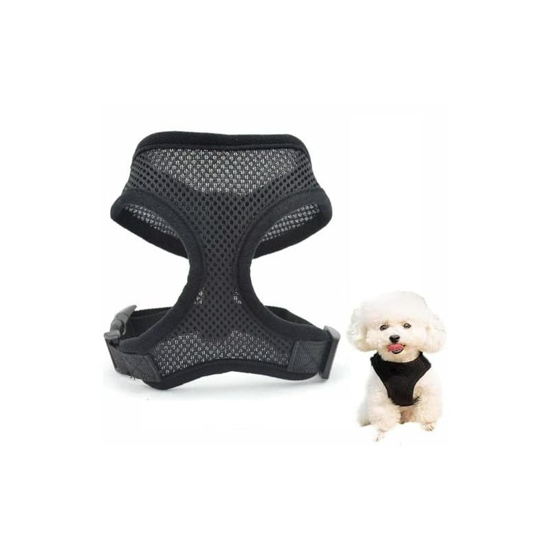 Soft Mesh Air-Mesh Dog & Cat Harness - Comfortable Padded Vest for Puppies and Cats - Breathable No Pull Harness (Black) (Large)