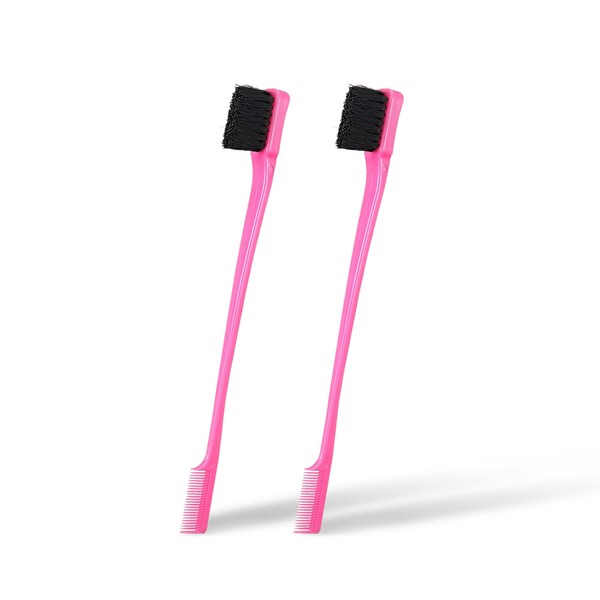 Soft 'N Style Double Sided Edge Control Hair Brush Comb Combo Pack 2 Pieces (Pink)