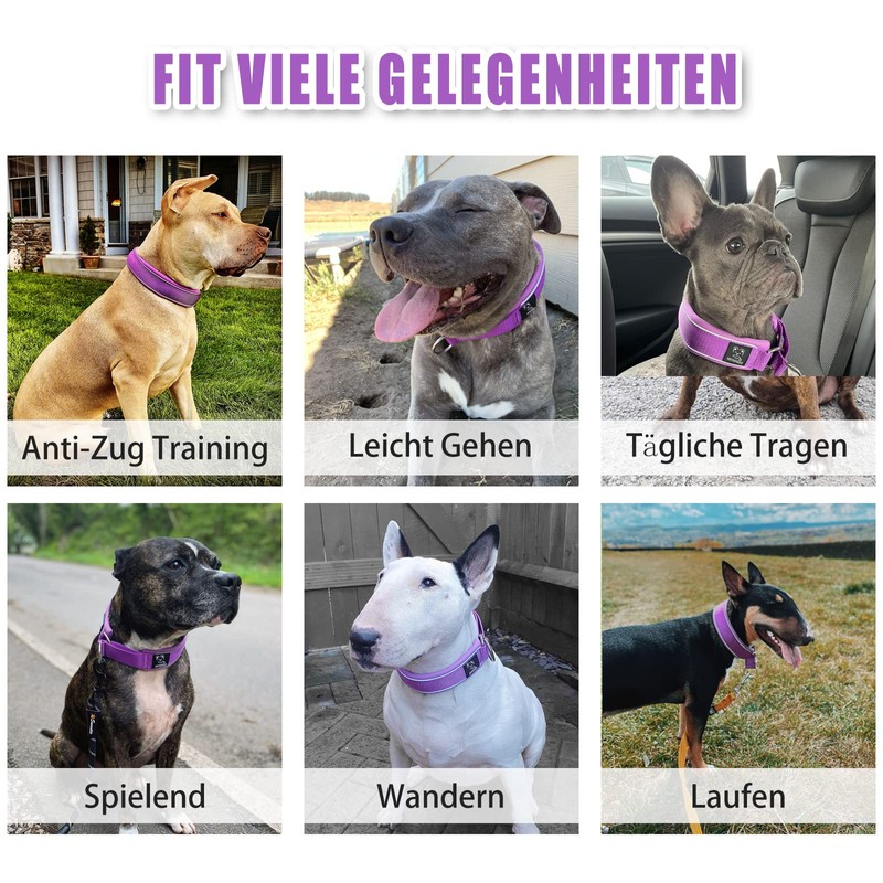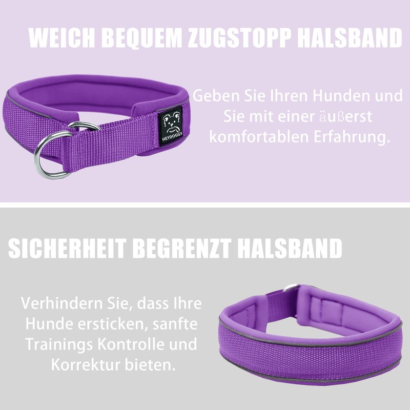 Soft Neoprene Padded Dog Collar (4 cm Wide), Reflective Dog Collar with Robust Nylon & Pull Stop, Comfortable Pull Collar Dressage Collar for Small Medium Large Dogs Anti-Pull Walking M, Purple