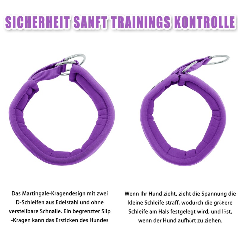 - Safety gentle training control: dog collars with two stainless steel D loops, which is larger, will slip over your dog's neck while the guide is cut off to the smaller one. When your dog pulls, the tension attracts the small loop that attaches the larger bow to the neck and loosens when the dog stops pulling. Pull collar can prevent dog teething. Perfect for training and provides a gentle and controlled correction for your dog