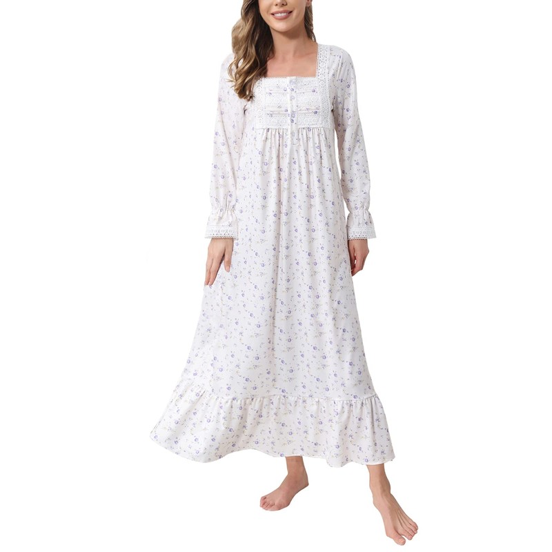 - 【Graceful Nightgown Design】 This Cotton Long Sleep Gown is features with victorian style, classic square neck, button front placket, delicate the beautifull lace trim at neckline and cuffs, flowy lotus leaf bottom hem. Wearing this victorian style nightshirt, you can add more romanticn for bedtime.