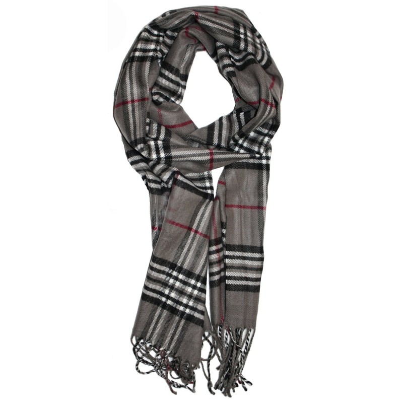 Soft Plaid Check Winter Scarf Warm Oblong 12”x72” Fringe Unisex Charcoal