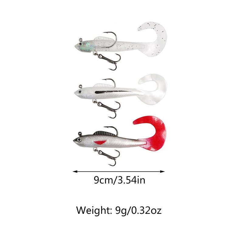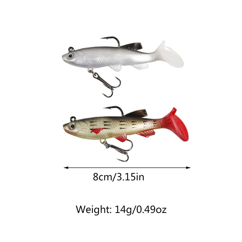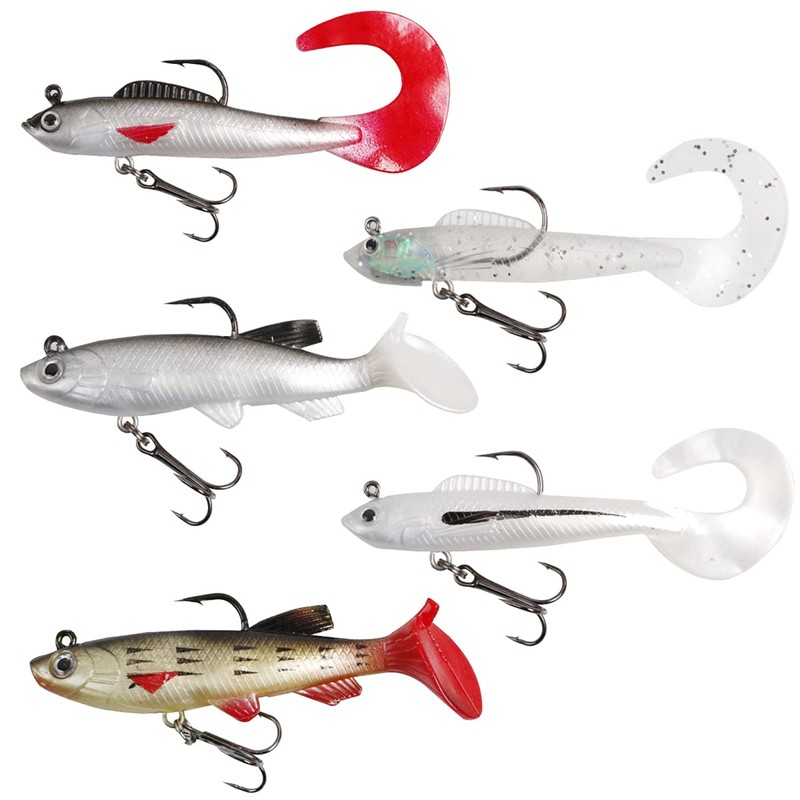 - [DURABLE BAIT] This set of fishing lures is the ideal combination of swinging and rolling because it is made of sturdy, long-lasting soft plastic. When cast, it dips gradually, allowing the fixture bait to function slowly while vibrating.
