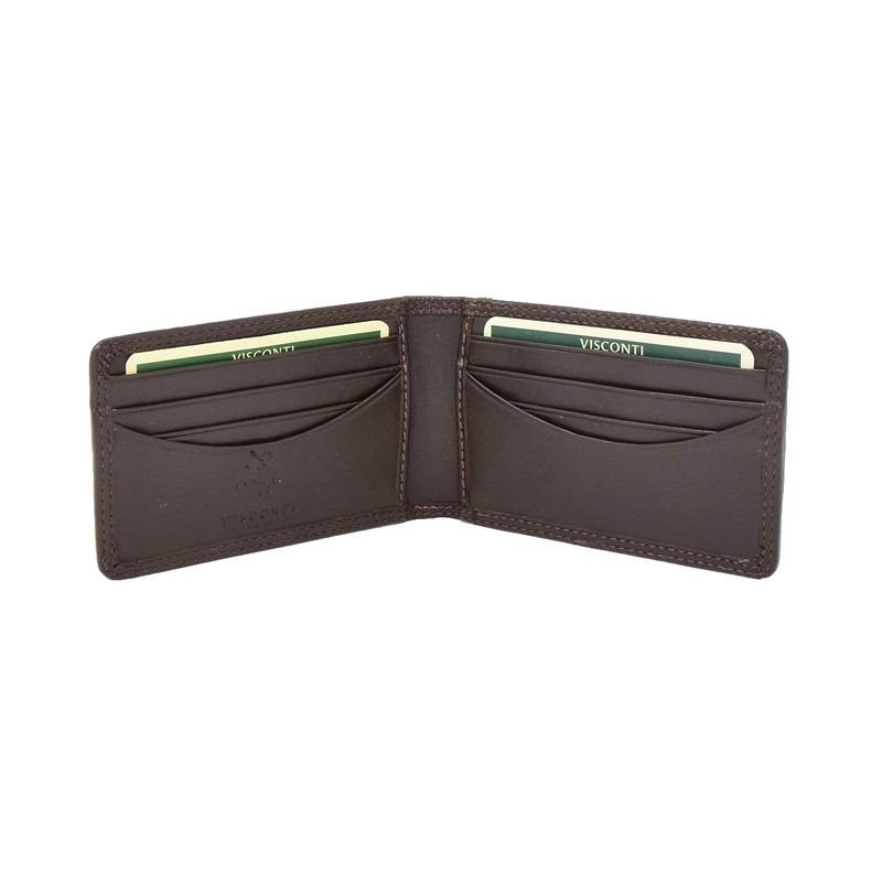 - It is a single fold wallet with eight card slots and one outer clear photo ID window pocket