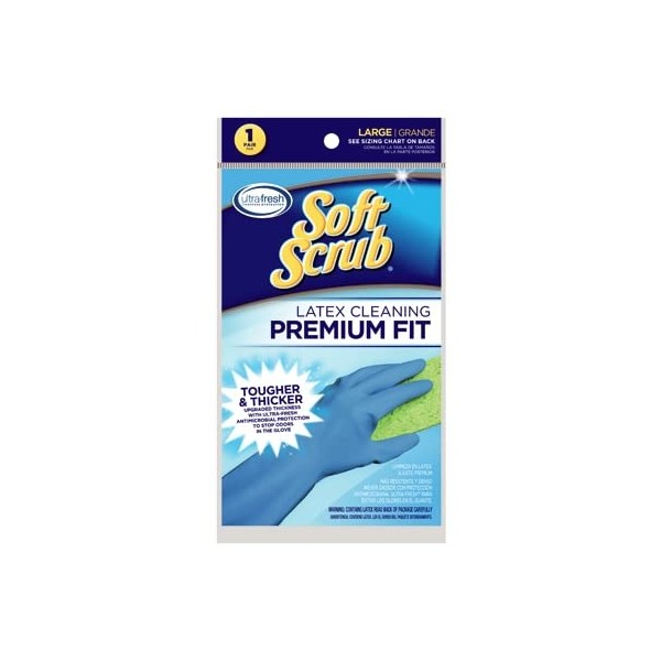 Soft Scrub 12412-26 Large Blue Premium Fit Latex Cleaning Gloves