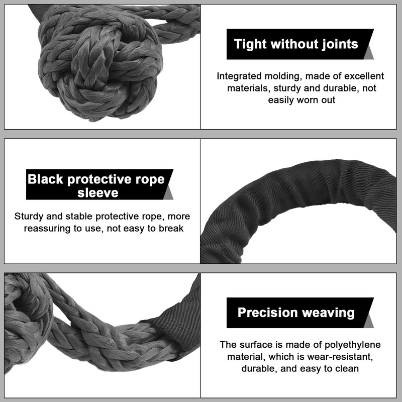 - 【Integrated hose protection】The soft shackle contains black protective cuffs against friction. This intelligent 17T break resistance shackle extends life - the recovery shackle vehicle recovery maintains rope integrity under extreme loads.