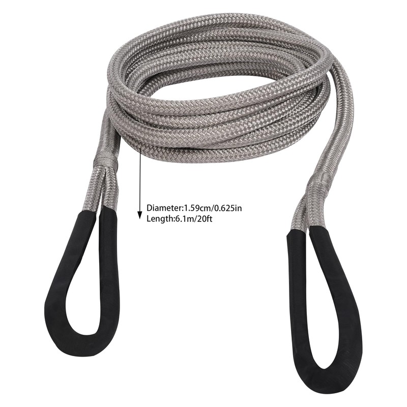 Soft Shackle Rope, 5/8"*20ft 15100 LBS Recovery Rope Road Recovery Kit with Handbag for Boats, ATVs, UTVs, Tractors, Trucks. (Grey)