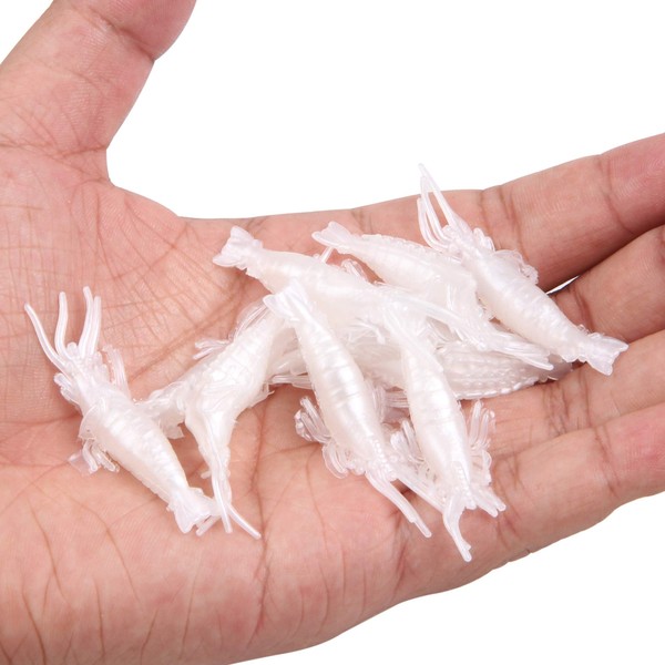 - 🐟 LIFE-LIKE: The small shrimp lures are highly detailed and realistic, sequins in the body can produce reflection to attract fish, glow in the dark fishing lures attract curious fish at night/deeper/muddy water.