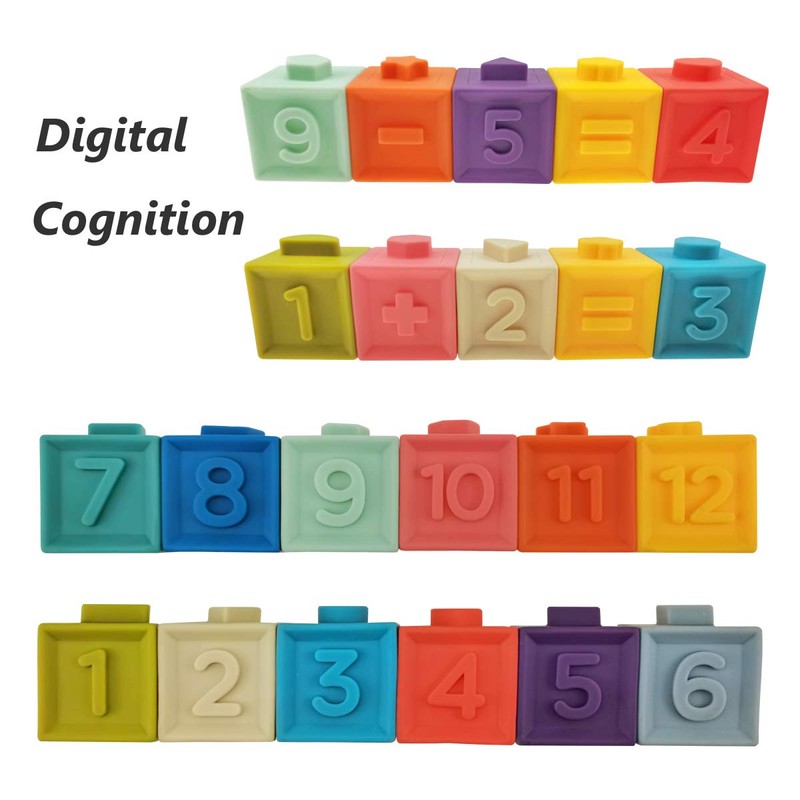 - Early Learning Skills Development ---- 12 Pieces Super soft blocks for babies and toddlers with beautiful colors. Encourage early learning. Teaching animals, colors, fruits, numbers, shape, hand-eye coordination and more.