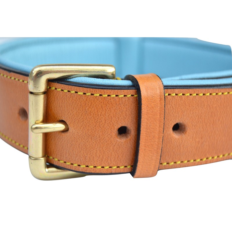 Soft Touch Collars Leather Padded Dog Collar, Extra Large, Tan and Teal, Heavy Duty Brass Buckle, 28" Long x 1 3/4" Wide, Neck Size 22" to 25", Size XL