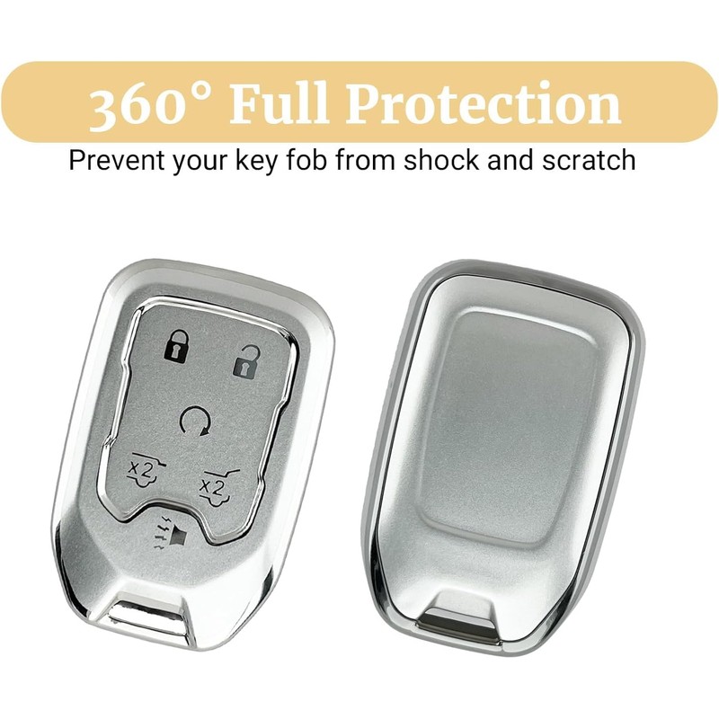 Soft TPU 6-Button for Chevy Key Fob Cover for Suburban Tahoe GMC Sierra 1500 2500HD 3500HD 2015 2016 2017 2018 2019 2020 2021 2022 2023 2024 2025, Silver