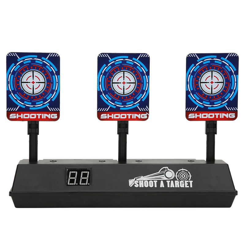 1、After all targets are shot, can automatically back, all shot to get a point, back only need 3 seconds. 2、After shooting down three target plates, the scoreboard will automatically increase one point, and then the target plate will automatically return to the upright state, you can then shoot for the second time. Never again have to worry about being hurt by child or damaging furniture. 3、Electric scoring target has flashing light accompanied by simulated gunshots and broken glass, sound and light effect encouraging the shooter. Whether single or group game, automatic self-standing target is the exciting challenge for athlete of all skill levels. 4、Digital target can used as personage shooting training to improve the aiming. It can also be played against the players to see who scores the most. Fun target for guns party, home party supplies or outdoor fun with parents. 5、Made of high quality materials, sturdy, durable and long service life.