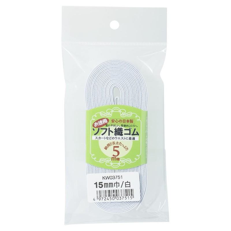 Soft Woven Rubber Roll, 16.4 ft (5 m), White, Waist Elastic (0.6 inch (15 mm), White)