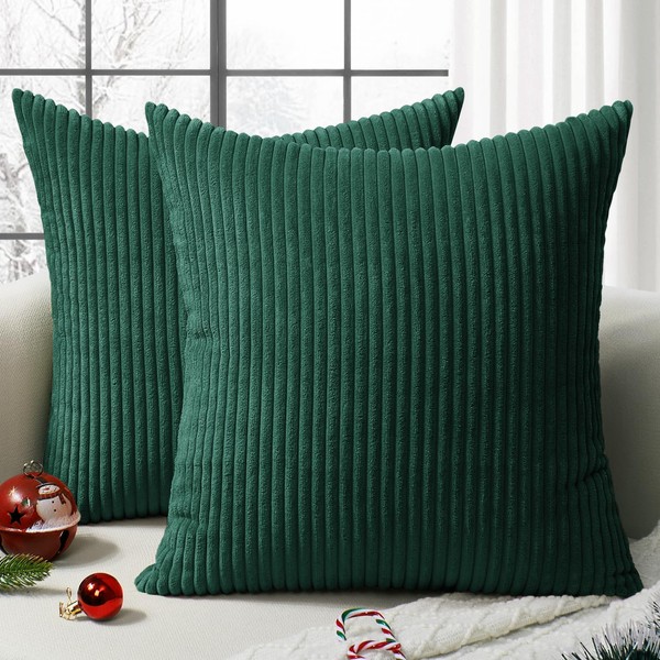 Softalker Christmas Cushion Cover, Dark Green, 40 x 40 cm, Set of 2, Corduroy Sofa Cushion, Couch Cushion, Decorative Cushion Covers with Striped Pattern, Christmas Decoration for Living Room,