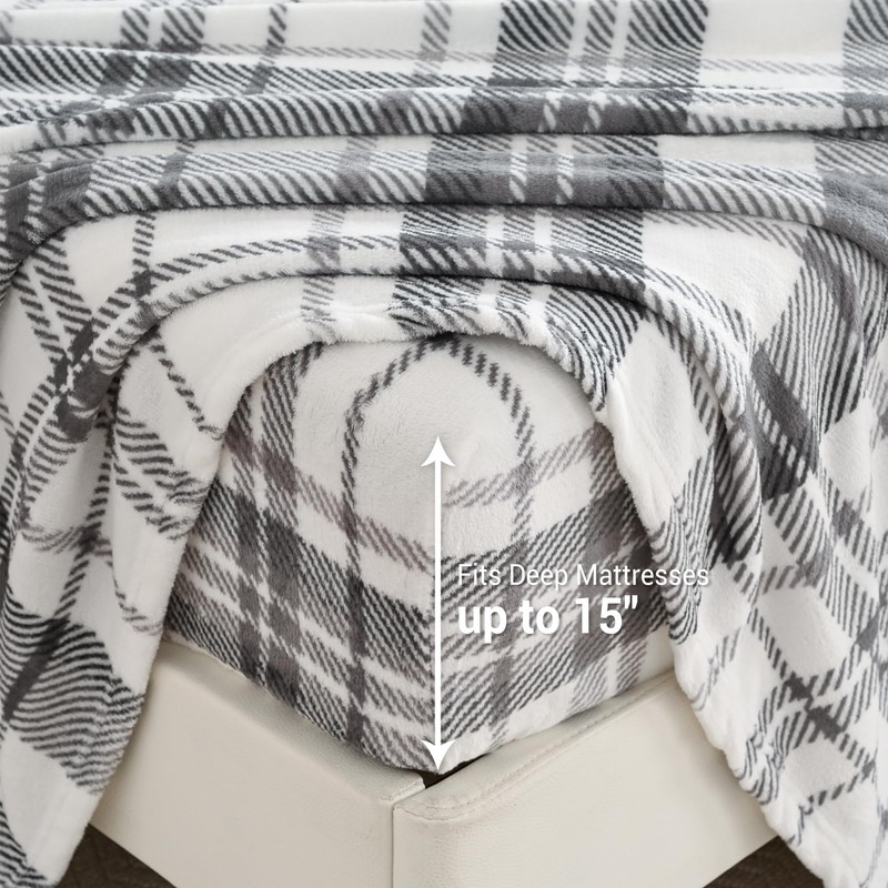 - 15" Deep Pocket Fitted Sheet: The Grey White Plaid queen size fitted sheet boasts excellent elasticity, preventing slippage during movement and accommodating mattresses up to 15 inches deep. This universal size fits most mattresses, ensuring a snug fit