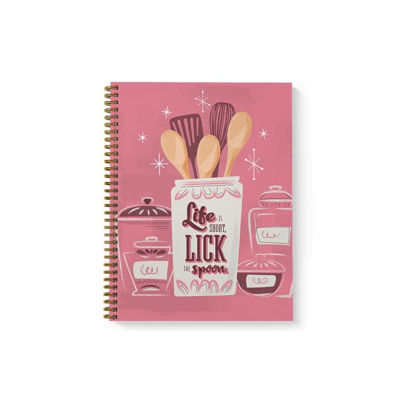 Softcover Lick The Spoon 8.5" x 11" Recipe Spiral Notebook/Journal, 120 Recipe Pages, Durable Gloss Laminated Cover, Gold Wire-o Spiral. Made in the USA