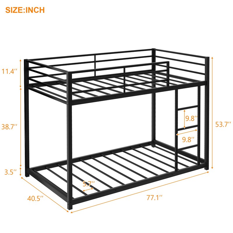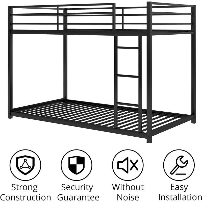 SOFTSEA Metal Bunk Bed with Ladder for Kids Twin Over Twin Low Bunk Bed for Teens (Twin Over Twin, Black)