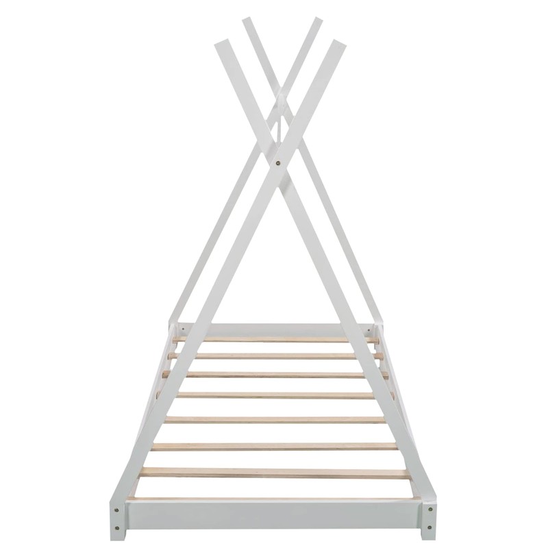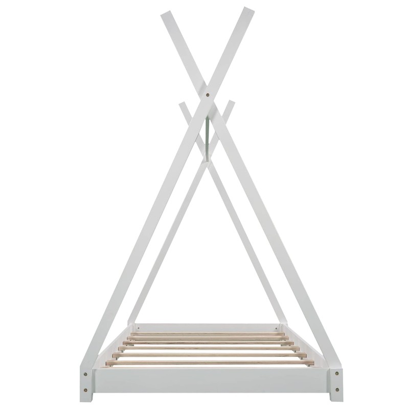 SOFTSEA Twin Size House Platform Bed with Triangle Structure, Floor Tent Shaped Bed for Kids, White