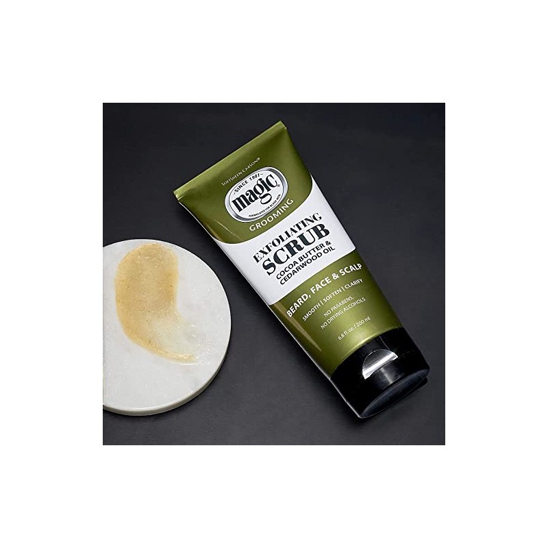 - For your beard- the magic grooming softening scrub for men deeply cleanses beard and removes residue, leaving your beard feeling tangle free and conditioned