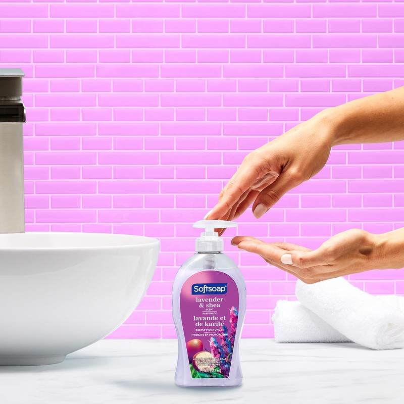 From the #1 liquid hand soap brand? comes a deeply moisturizing hand soap with a Lavender & Shea scent. This Lavender & Shea scented Softsoap hand soap is one you'll want to keep on your sink to infuse every small moment with joy. This moisturizing hand soap deeply moisturizes to hydrate dry skin, all while effectively washing away bacteria for clean and fresh hands. Feel the joy of clean with Softsoap hand soap! ?Based in part on data reported by Nielsen through its Market Track Service for the Liquid Hand Soap Category for the 52 week period ending 1/1/22, for the All Outlet market. Copyright ? 2022 Nielsen.