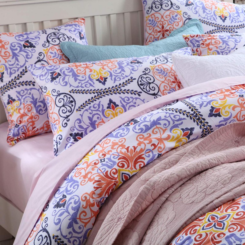 Softta Boho Bedding Sets Queen Bohemia Style 3Pcs Damask Duvet Cover Paisley Bedding Exotic Geometric Round Pattern Bedding 100% Egyptian Cotton 800 Thread Count White Purple Orange