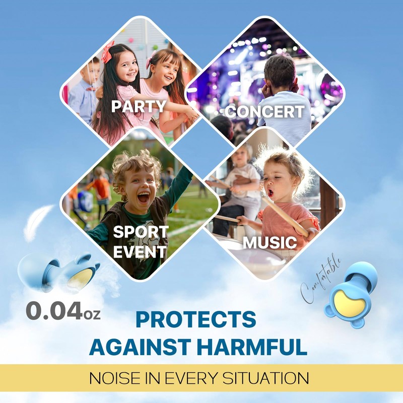 - đăGentle and ComfortableăCrafted from soft, kid-friendly materials, these silicone ear plugs provide a snug and comfy fit. No more complaints of discomfort â your child will barely notice they're wearing them! For Music Lovers, Travel Explorers, Little Sleepers, Study Buddies(Minimize distractions during study time) and Party Animals(Celebrate without worries).